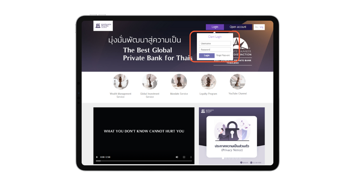 2. ระบบจะนำไปสู่หน้าเว็บไซต์ Wealth management