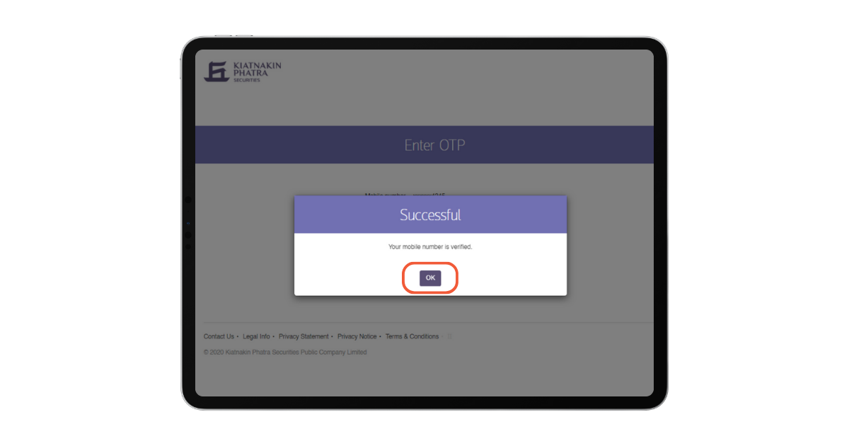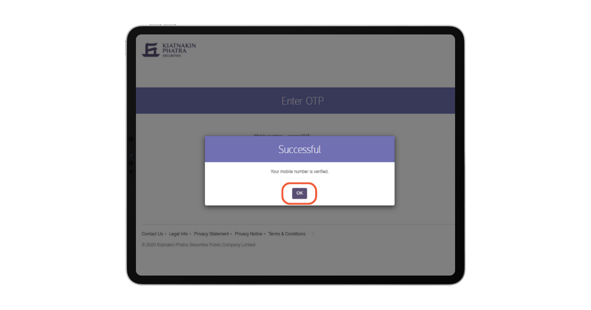 6. ระบบจะแจ้ง OTP เพื่อยืนยันตัวตน ไปยังเบอร์โทรศัพท์