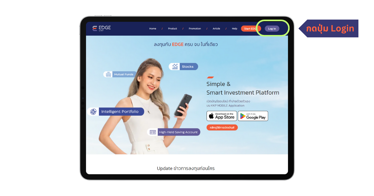1. หน้าเว็บไซต์ Wealth management ผู้ใช้งาน กดปุ่ม "Login"
