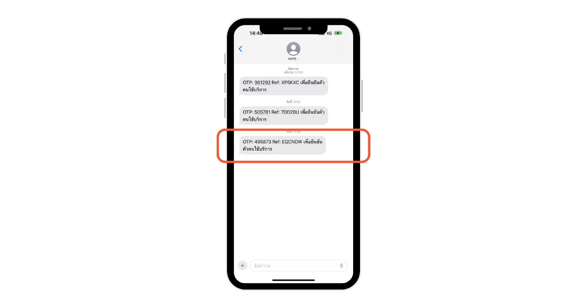 4. ระบบจะแจ้ง OTP เพื่อยืนยันตัวตน ไปยังเบอร์โทรศัพท์