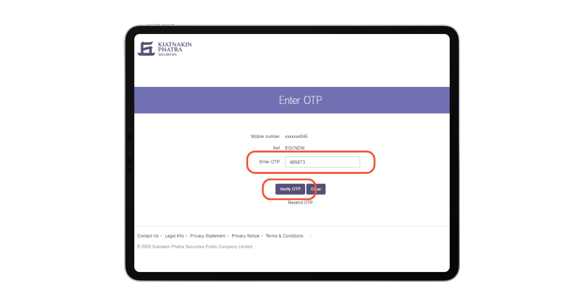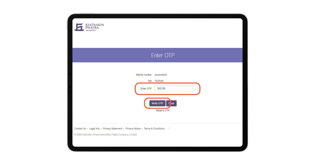 5. นำ OTP มากรอกที่ช่อง Enter OTP จากนั้น กดปุ่ม "Verify OTP"