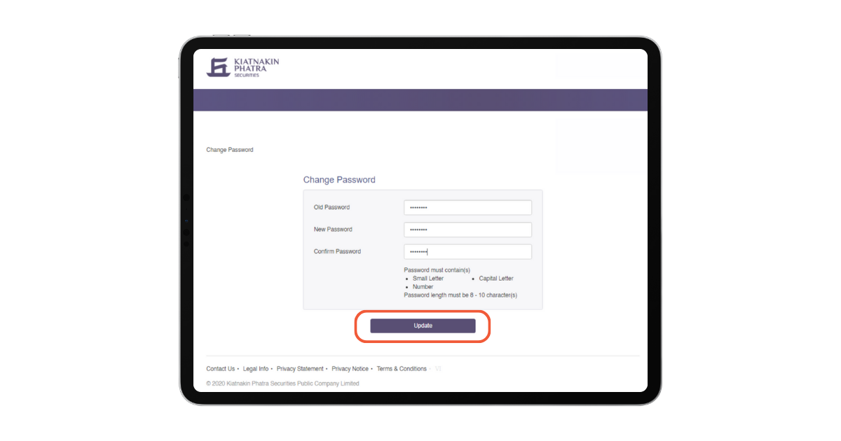 9. เมื่อ Login สำเร็จ ระบบจะแสดงหน้าจอ Change Password ให้กรอก