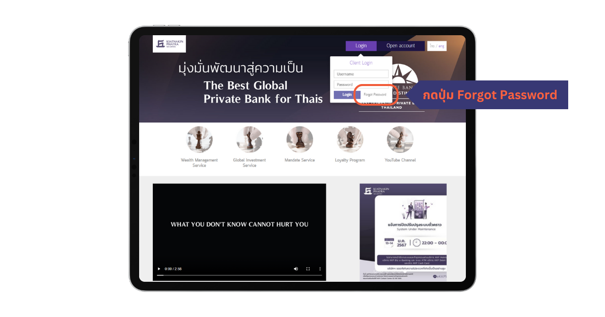 ลูกค้าที่จะสามารถเข้าใช้งานผ่านเว็บไซต์ได้จะต้องมีบัญชี KKP และ Username / Password มาก่อนแล้ว