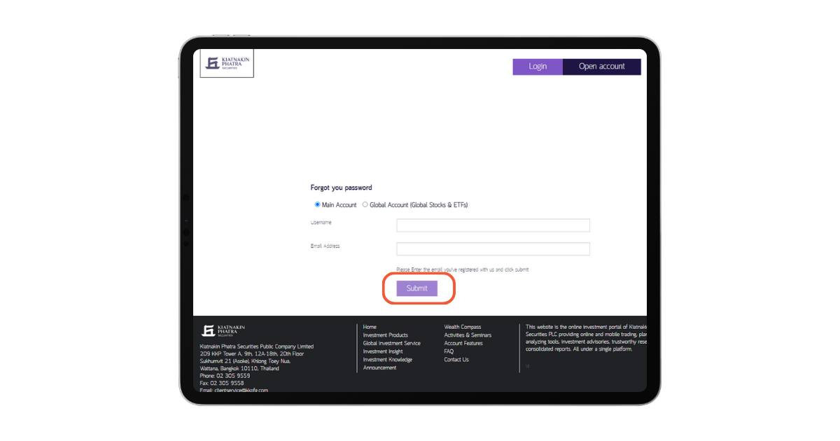 3. กรอก Username และ Email Address จากนั้น กดปุ่ม "Submit"