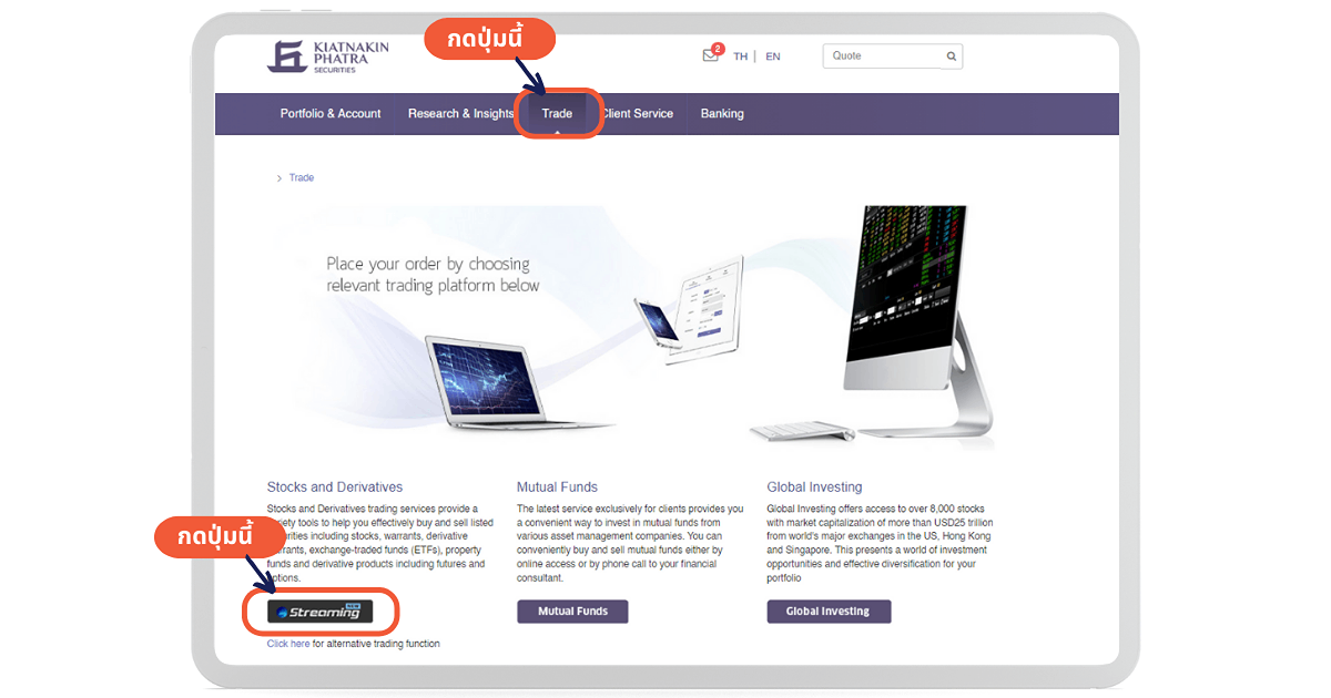 2. ไปตรง Stocks and Derivatives กดปุ่ม "Streaming"
