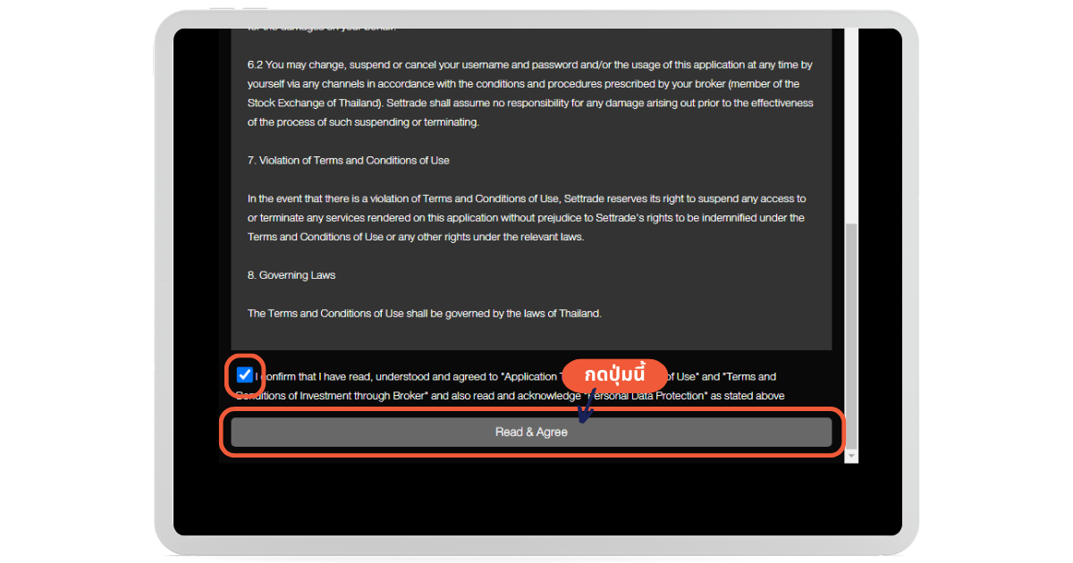 4. ติ๊กที่ช่อง เพื่อยอมรับข้อตกลงและเงื่อนไขการใช้งาน