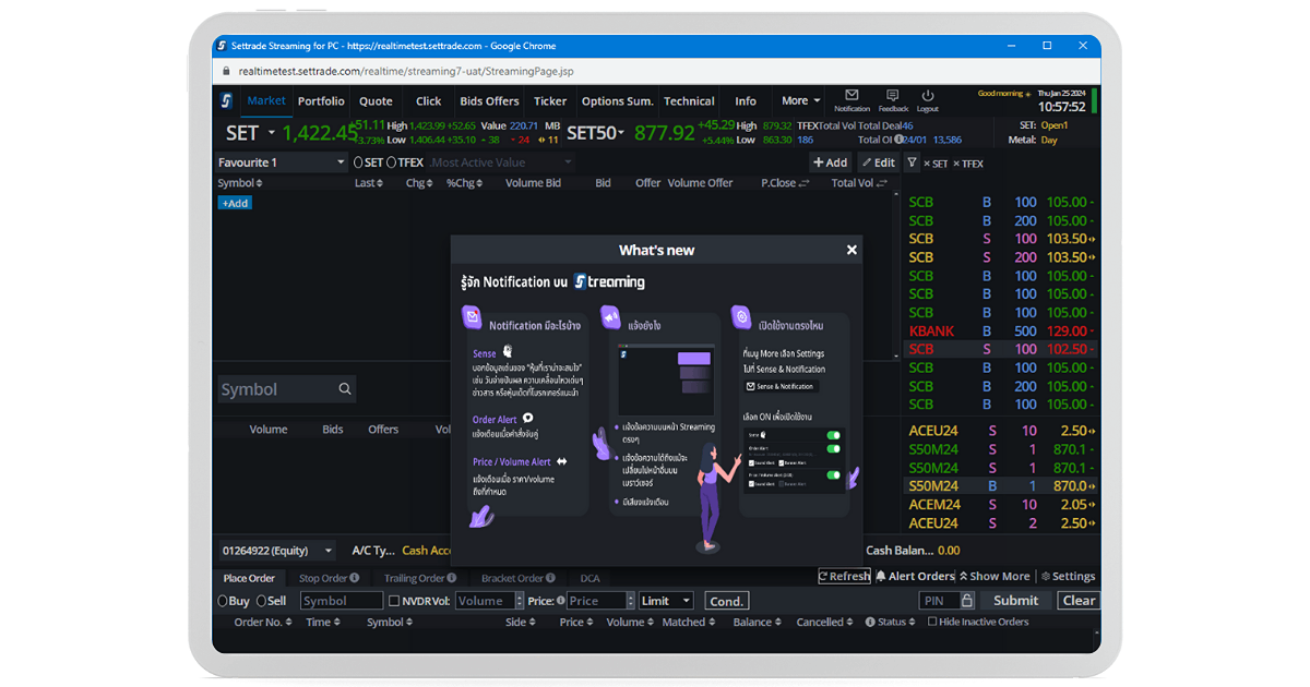 7. ทำรายการซื้อขายหุ้นผ่าน Streaming ได้ตามปกติเลย